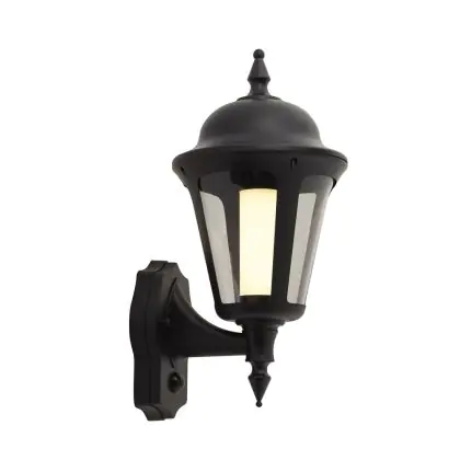 Ansell LED-Wandleuchte/ Laterne Latina Schwarz – Geeignet für E27 bis zu 42W | IP65 – Bewegungs und Lichtsensor