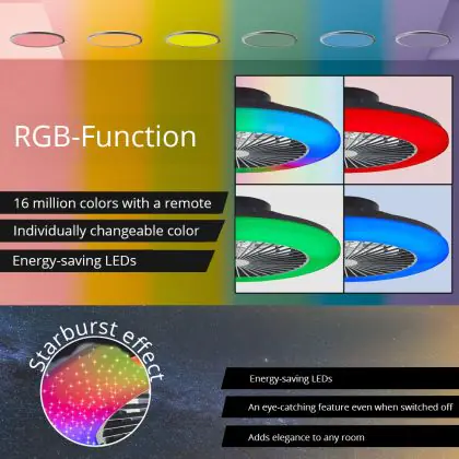 Beschreibung Brilliant Salerno Ventilator Plastik Metall Schwarz 36W 4700lm - 830-865 CCT+RGB | 485mm - Fernsteuerung Dimmbar