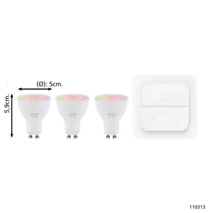 Die Eglo Connect.Z Smart LED-Spot GU10 PAR16 14.7W 345lm 45D - 827-865 Abstimmbares Weiß + RGB | Dimmbar - Ersatz Für 50W ist eine effiziente GU10 LED-Lampe und der perfekte Ersatz für Ihre konventionelle Halogenlampe mit 50W und einem GU10-Sockel, bei welchem die zwei Stifte einen Abstand von 10 mm zueinander haben. Zudem strahlt das Produkt Licht in der Farbtemperatur 2700K - 6500K Tunable White + RGB aus und punktet durch eine lange Lebensdauer.