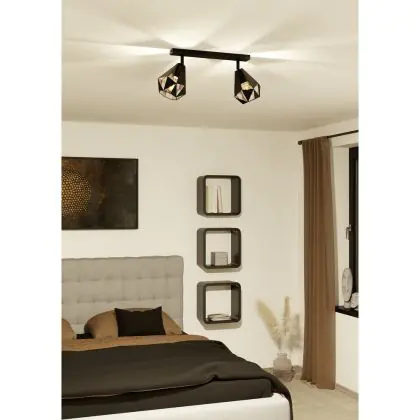 Eglo Deckenleuchte Carlton 7 Stahl Schwarz Bernstein | IP20 - Geeignet für 2x E27