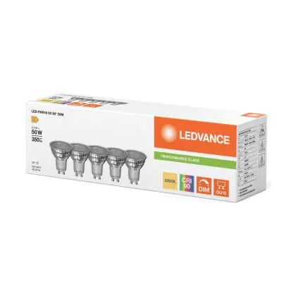 Die Ledvance LED GU10 PAR16 Performance 3.7W 350lm 36D - 930 Warmweiß | Höchste Farbwiedergabe - Dimmbar - Ersatz Für 50W ist eine effiziente GU10 LED-Lampe und der perfekte Ersatz für Ihre konventionelle Halogenlampe mit 50W und einem GU10-Sockel, bei welchem die zwei Stifte einen Abstand von 10 mm zueinander haben. Zudem strahlt das Produkt Licht in der Farbtemperatur aus und punktet durch eine lange Lebensdauer.