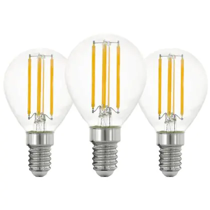 Die Mehrfachpackung 3x Eglo LED Kugel E14 Fadenlampe Klar 21W 806lm - 827 Extra Warmweiß | Ersatz Für 60W ist eine effiziente E14 LED-Lampe mit Retrodesign und der perfekte Ersatz für Ihre konventionellen 60W Lampen mit E14. Zudem strahlt sie Licht in der Farbtemperatur 2700K - Extra Warmweiß aus und punktet durch eine lange Lebensdauer.