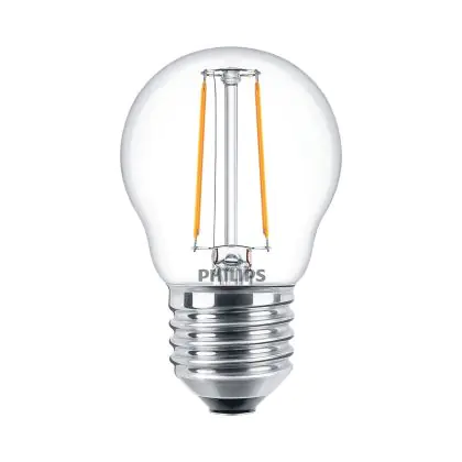 Die Philips Corepro LED Lustre E27 Kugel Fadenlampe Klar 2W 250lm - 827 Extra Warmweiß | Ersatz für 25W ist eine effiziente E27 LED-Lampe mit Retrodesign und der perfekte Ersatz für Ihre konventionellen 25W Lampen mit E27. Zudem strahlt sie Licht in der Farbtemperatur 2700K - Extra Warmweiß aus und punktet durch eine lange Lebensdauer.