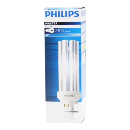 Die Philips Master PL-T besitzt eine Lichtfarbe von 2.700 K (Extra Warmweiß). Der Farbwiedergabeindex liegt bei 80-89 RA und hat damit eine gute Farbwiedergabestufe. Das Leuchtmittel hat einen Lumen-Wert von 2.350 lm. Die Philips besitzt eine Lebensdauer von 13.000 Stunden. Bei einer durchschnittlichen Beleuchtung von 40 Stunden die Woche hält die Lampe 6 Jahre. Wir von BeleuchtungDirekt sind von der Philips Master überzeugt und gewähren Ihnen eine All-in Garantie von 5 Jahren.